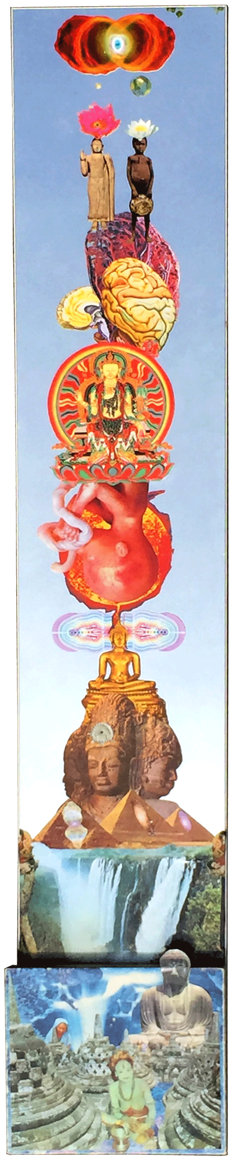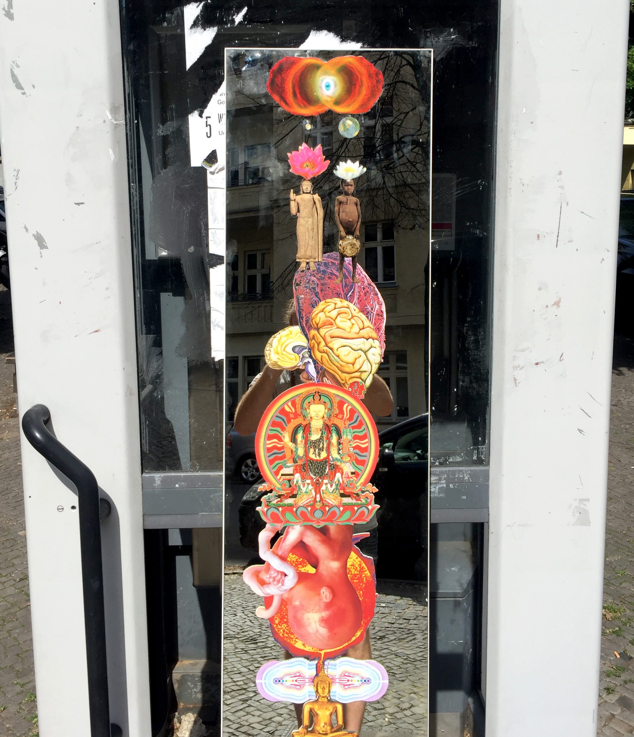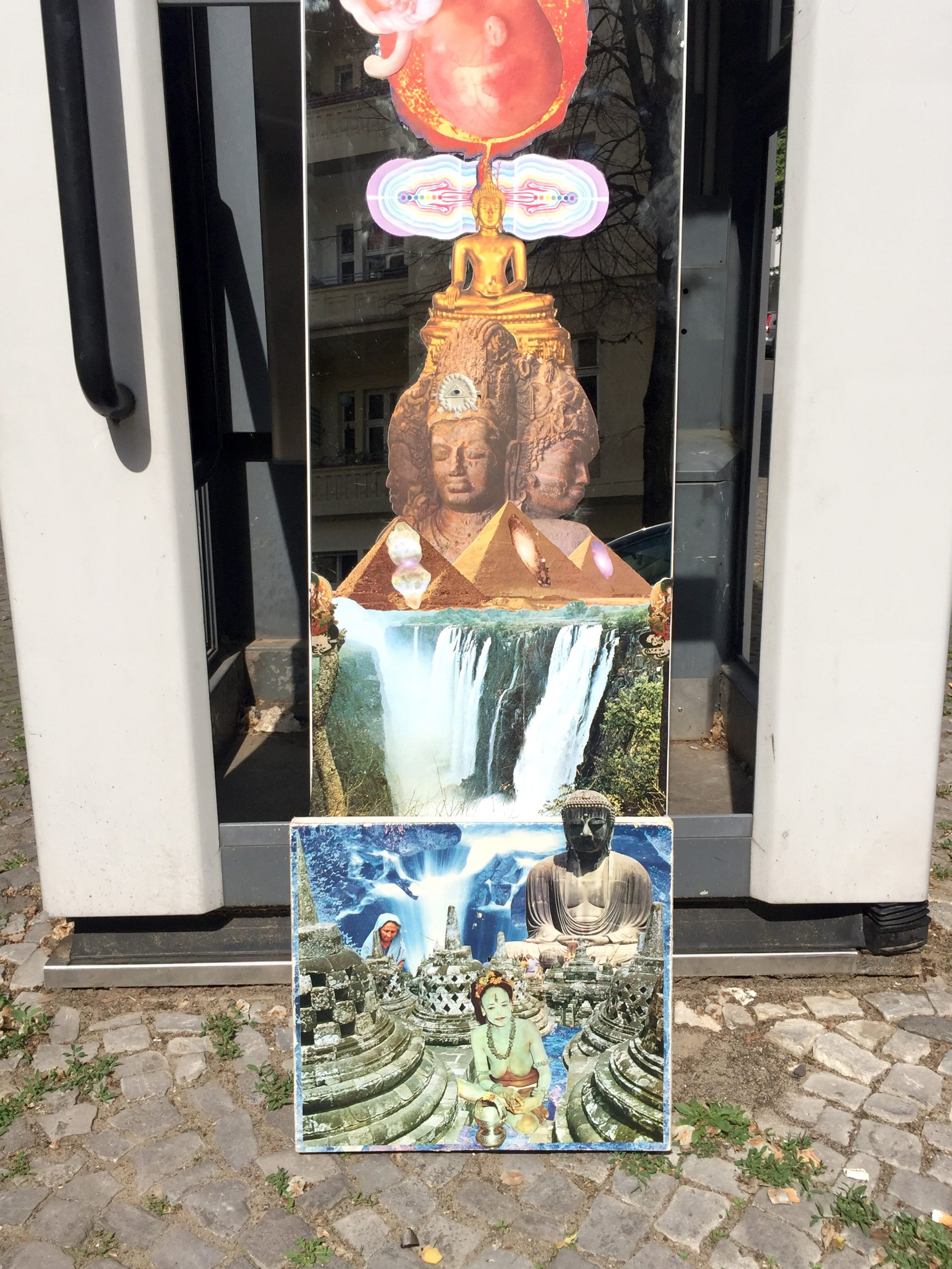 bodhichitta, paper collage on found mirror, 33cm x 185cm x 5cm, 2020