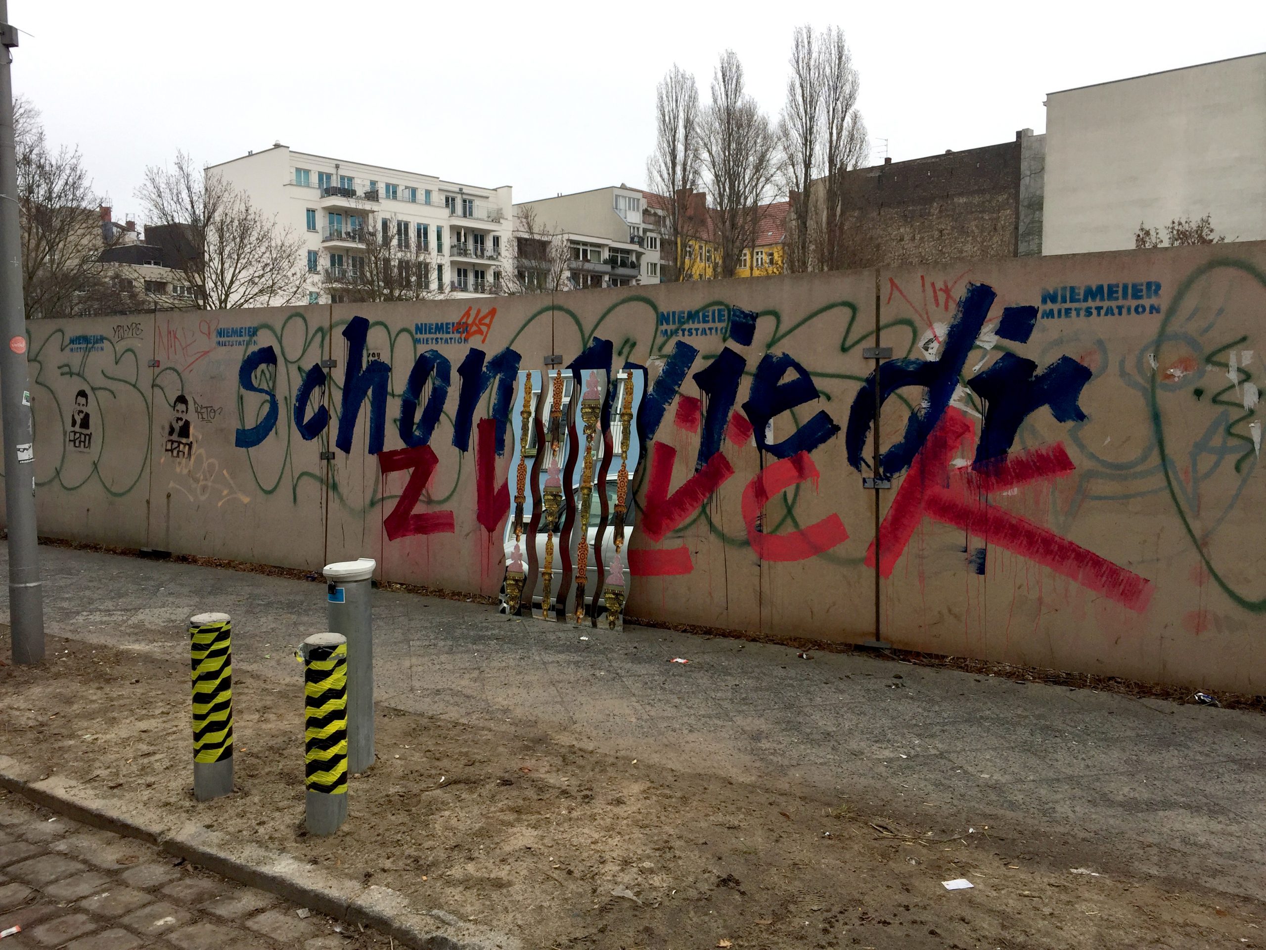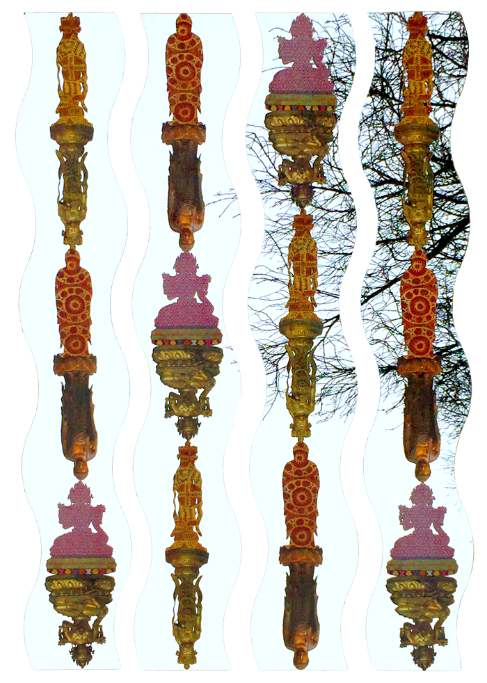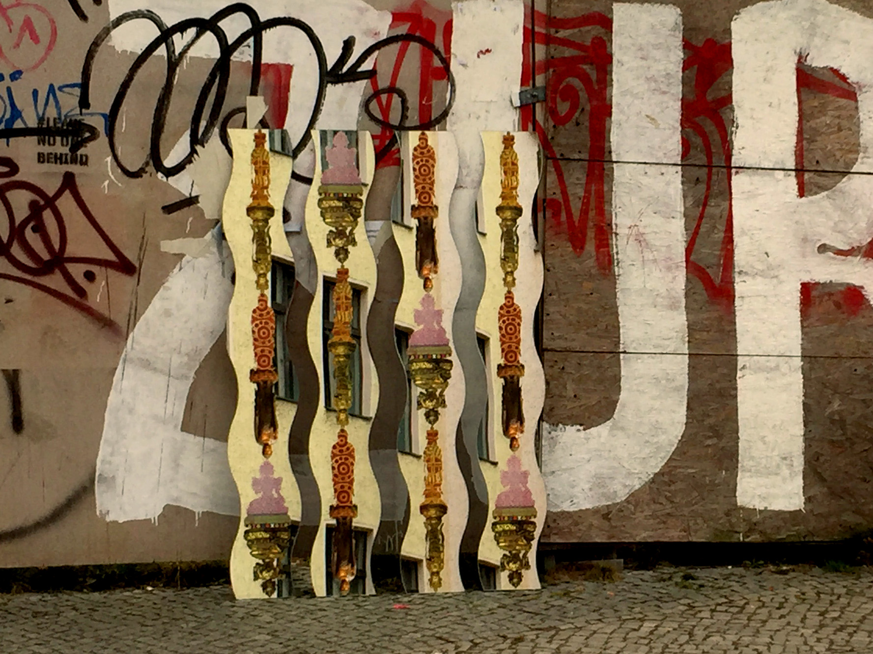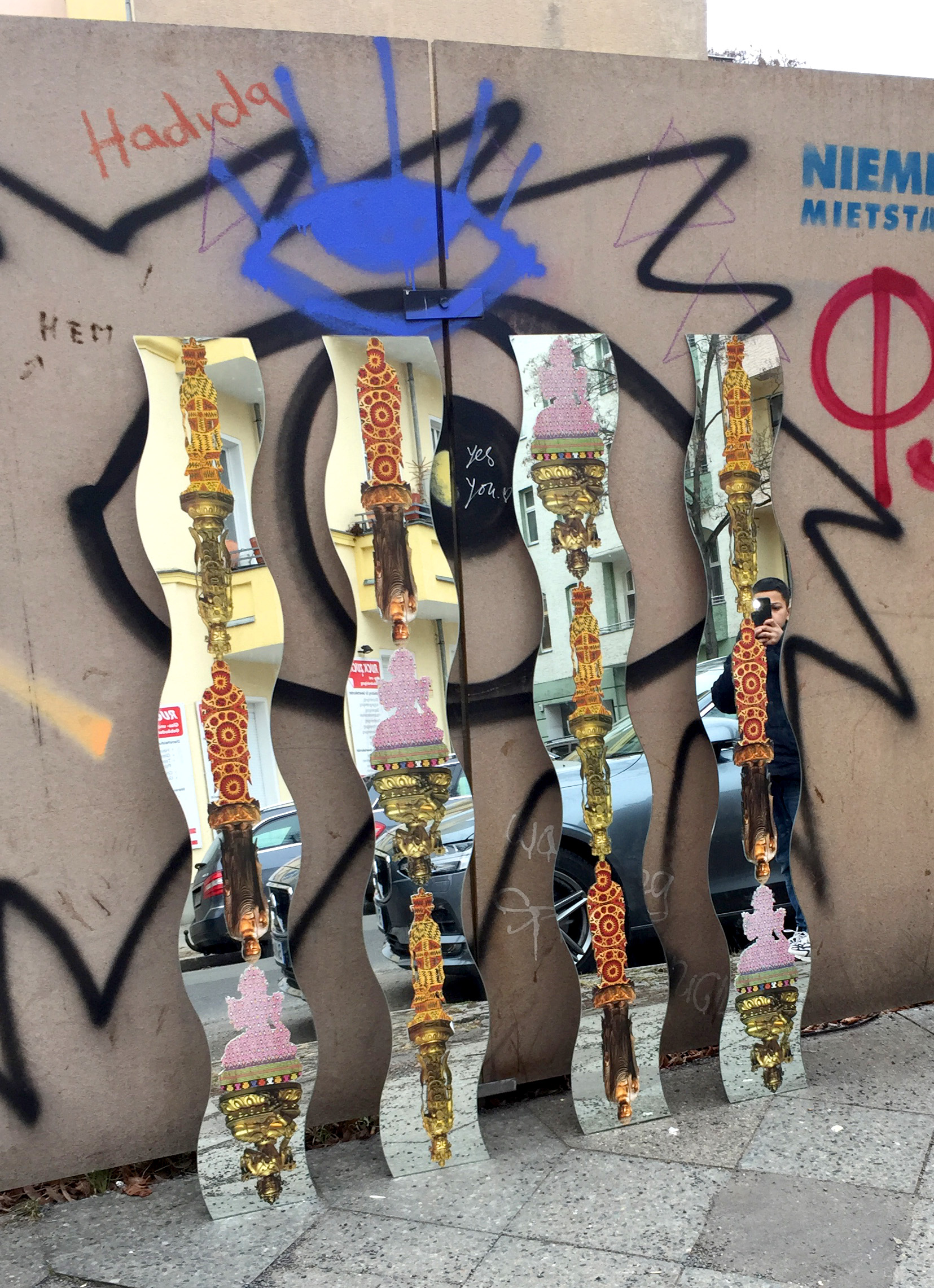 listen, paper collage on found ikea mirrors, 30cm x 200cm each, 2021