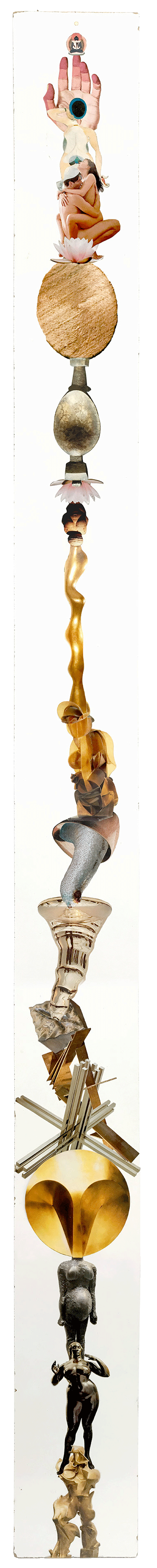 non-conceptual unity, paper collage on found particle board, 15cm x 200cm, 2020
