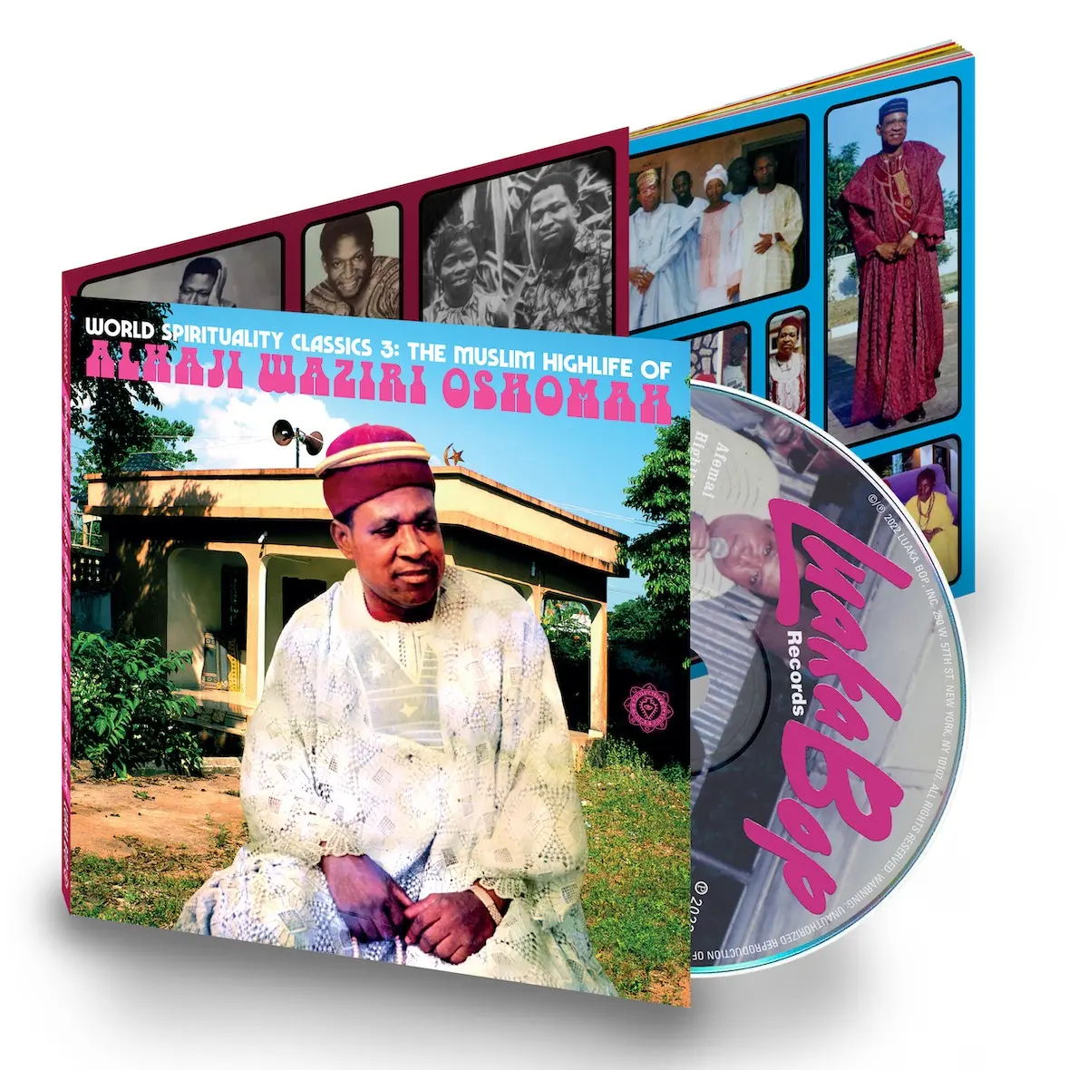 Alhaji Waziri Oshomah’s aesthetic was a joy to work with. His original covers are superb and perfectly utilize classic fonts and simple graphics. In making Luaka Bop’s compilation World Spirituality Classics 3: The Muslim Highlife of Alhaji Waziri Oshomah I enjoyed using more fonts than I normally do and a bright color palette, along with beautiful archival and some current photographs.
