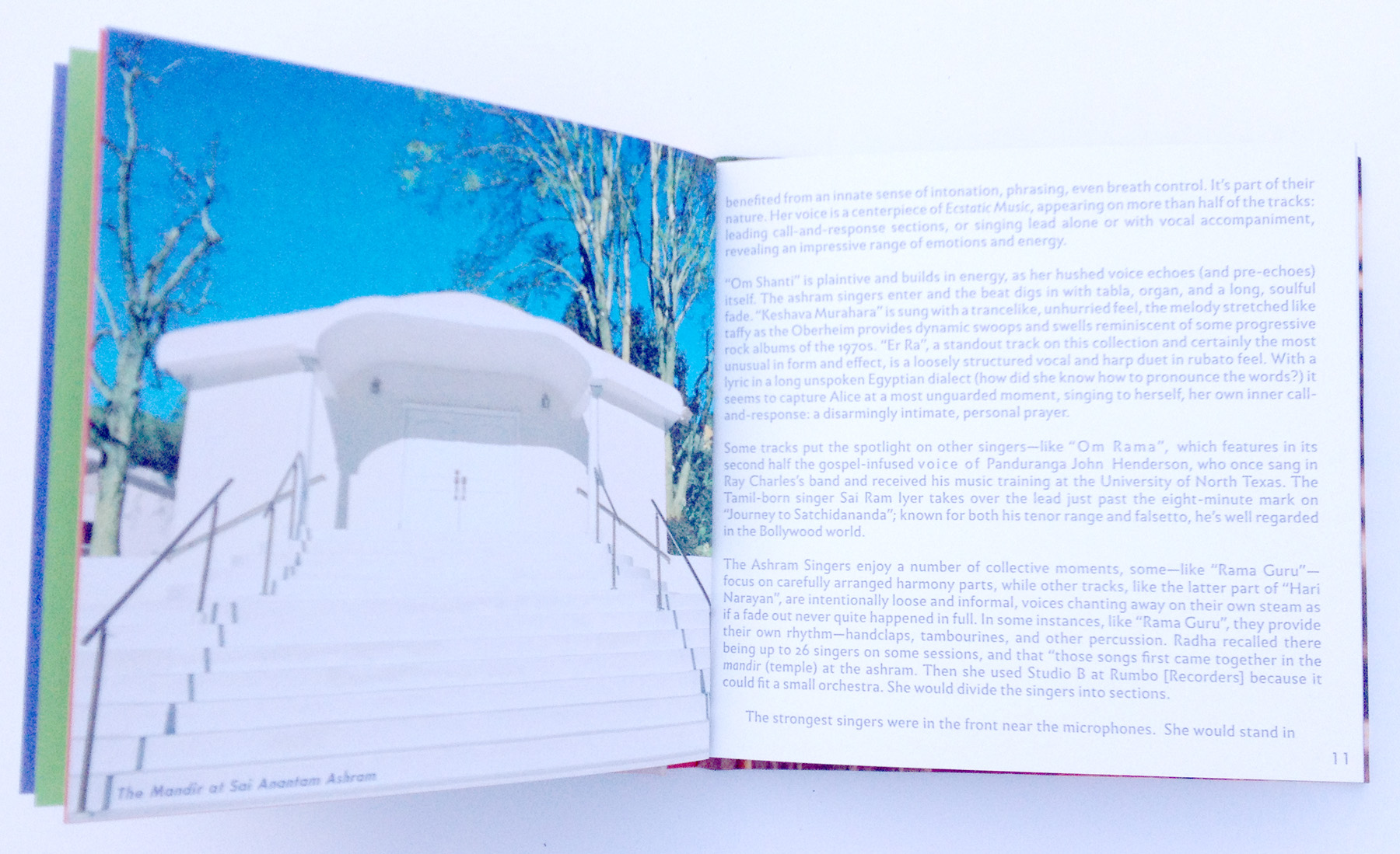 Alice and her Ashram’s music is truly wonderful. Immersive, transcendental, sincere, dynamic. This album package contains very engaging and informative essays and interviews with family members, students and ashram members. Highly recommend.
