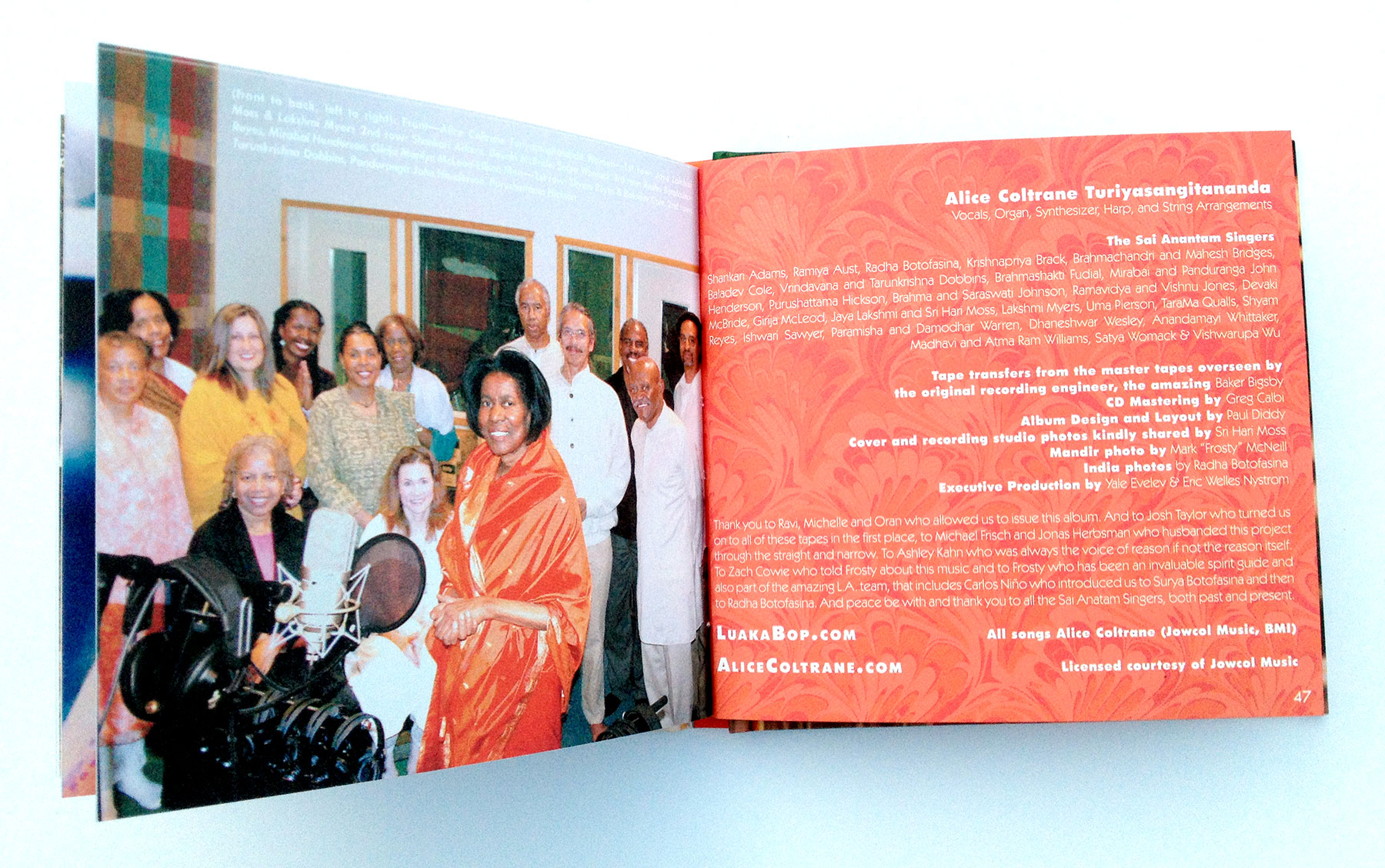 Alice Coltrane Turiyasangitananda is a musical hero of mine. She and her cohort really. Honoring her legacy with design was an honor, and I’m very happy with how this record turned out, especially the music. I later also learned that Doja Cat is on the cover (in the pink to the left of Alice).